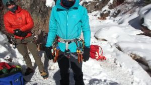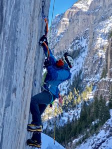 I never grew out of that childhood phase where you want to climb on everything that you see! I started with some easy free climbing out west in Utah and Colorado some years ago but hadn’t had any formal training. I was honored to have private guided instruction from Judith Spancken on multi-pitch sport climbing in the south of France in 2018 and have since spent time in the indoor rock wall, working on efficiency of movement. Aside from instruction given during many of my larger mountain expeditions, I have had dedicated ice climbing and mixed climbing training in Ouray, Colorado in 2016 and in 2019. I am still very new to the sport and will always be learning!